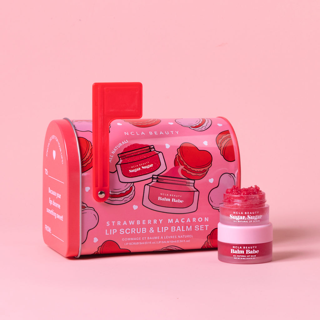 Sweet lips are in. Our Strawberry Macaron Lip Care Set starts with a gentle sugar scrub, then seals the softness with a luscious balm. Kissably smooth, berry-sweet, and ready for any Valentine’s Day moment. The best part? This adorable lip set comes packaged in a reusable mailbox shaped tin can!